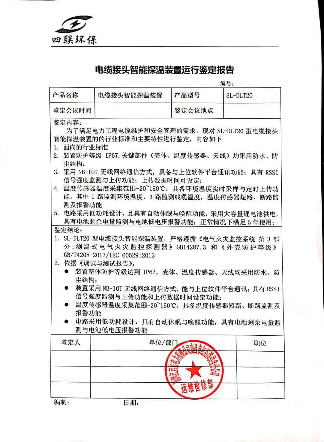 2020年6月1日,我公司与国网•江西省电力科学研究院举行“电缆接头智能探温装置”的运行鉴定会,并邀请了国网江西省电力公司南昌红谷滩分公司的专家。该产品顺利通过鉴定,并得到专家的一致好评。